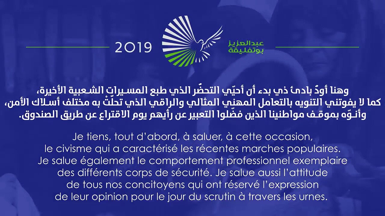 Message du Candidat Abdelaziz Bouteflika exprimant les six engagements imminents pour notre pays