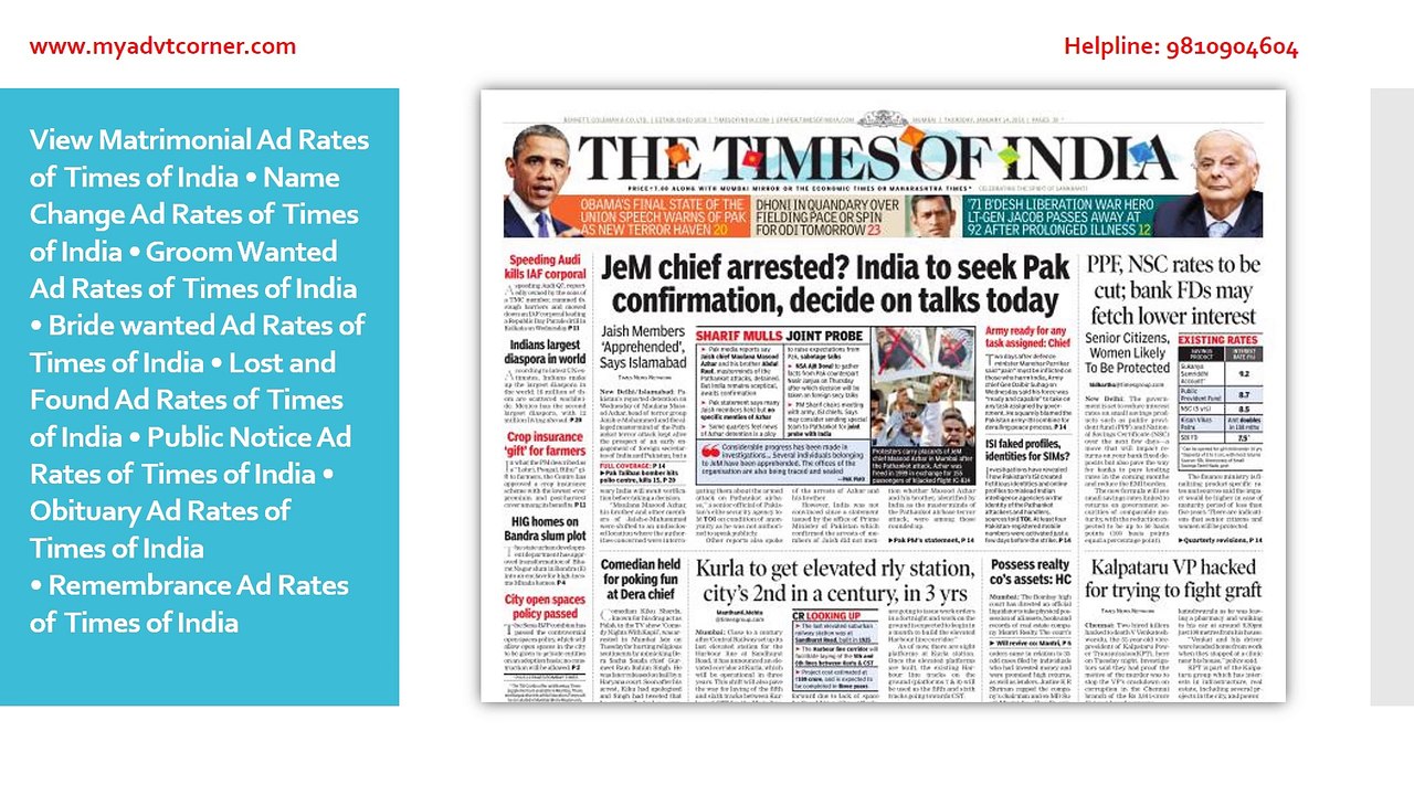 Times of India Advertisement Booking Online at Cheapest Rates
