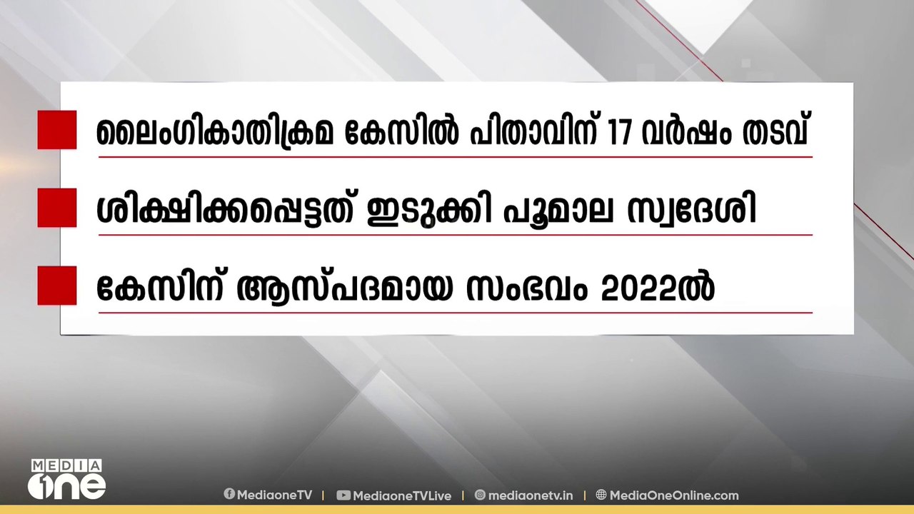 ഇടുക്കിയിൽ മകളോട് ലൈംഗീകാതിക്രമം കാട്ടിയെന്ന കേസിൽ പിതാവിന് 17 വർഷം കഠിന തടവും ഒന്നര ലക്ഷം രൂപ പിഴയും ശിക്ഷ