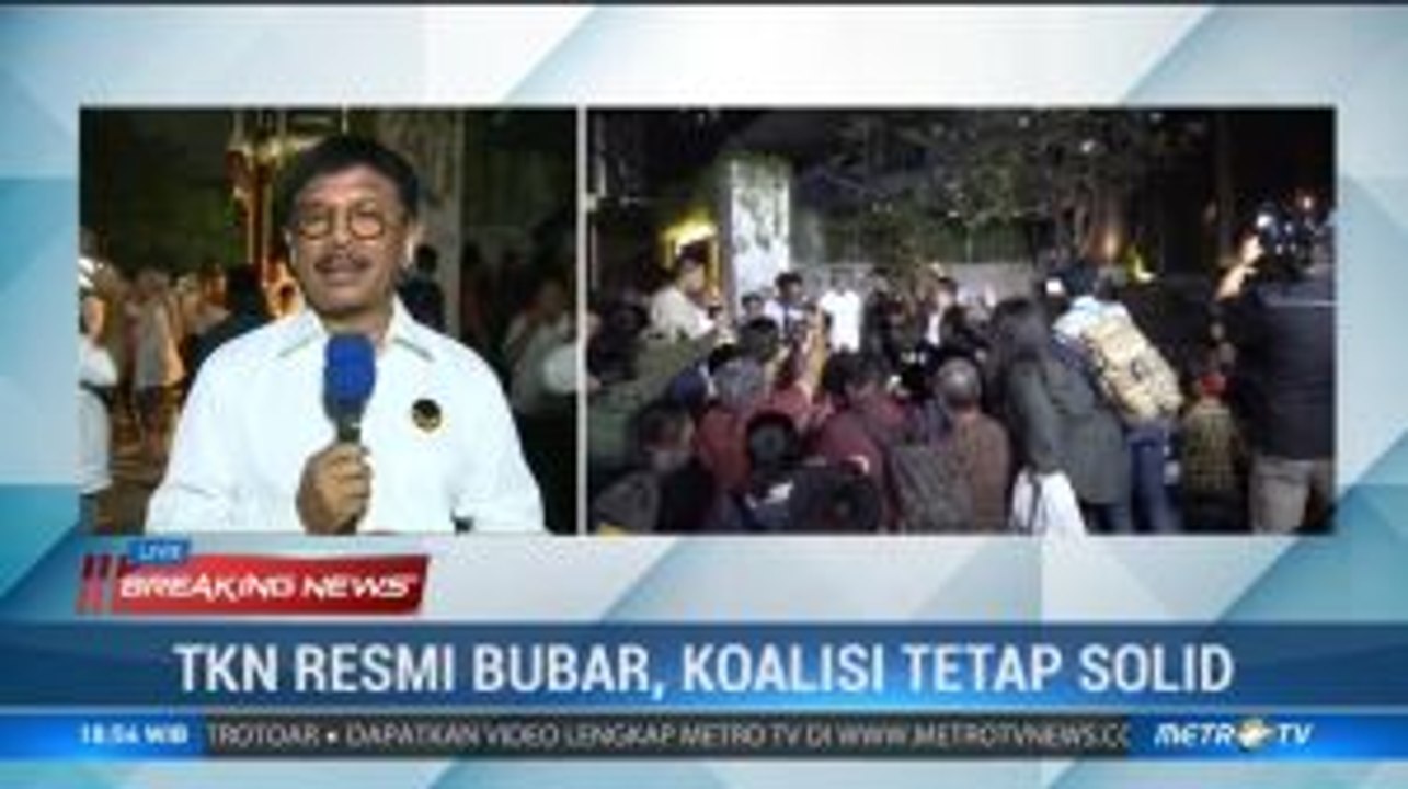 Hari ini akan dilakukan pembubaran Tim Kampanye Nasional (TKN) yang dihadiri para sekjen parpol koalisi di Restoran Seribu Rasa Menteng, Jakarta Pusat. Wakil Ketua Tim Kampanye Nasional (TKN) Abdul Kadir Karding menegaskan bahwa pembubaran TKN merupakan acara berkumpul bersama semata, tidak ada pembahasan yang serius.