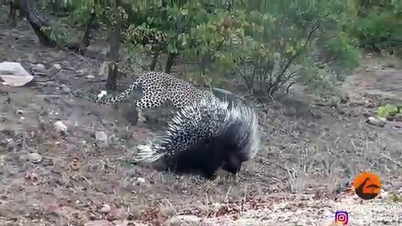 Leopard Takes ,On And, Fights, Porcupine