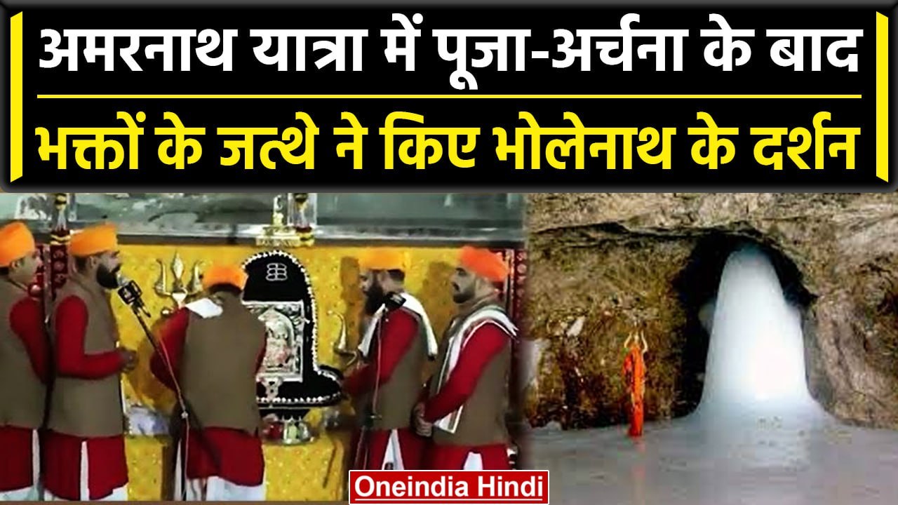 Amarnath Yatra 2023: अमरनाथ में भक्तों के दर्शन से पहले विधी-विधान से की गई आरती | वनइंडिया हिंदी