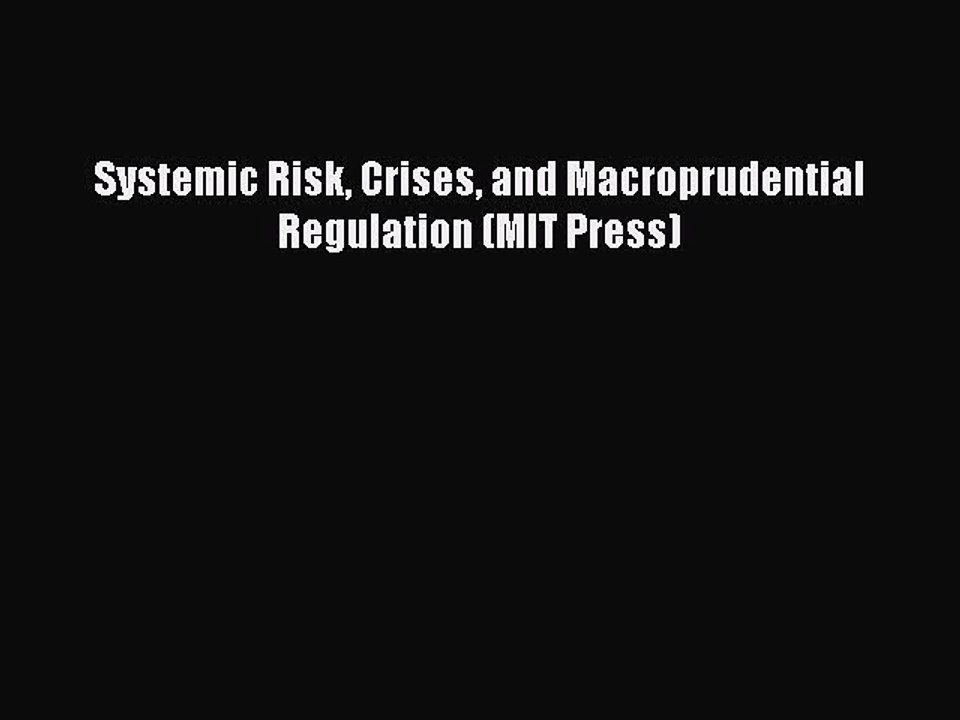 [PDF] Systemic Risk Crises and Macroprudential Regulation (MIT Press) [Read] Online