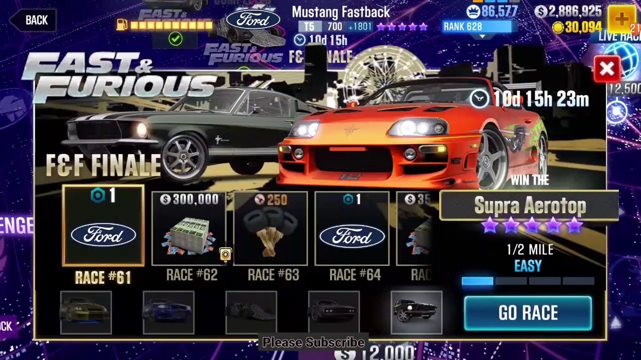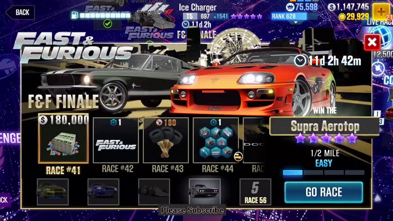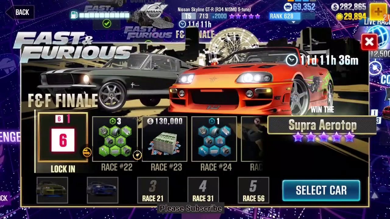 Win races 21-40 of #Fast&Furious F&F Finale Evo Cup event with #Plymouth Road Runner, Brian's #Nissan #Skyline GT-R (BNR34) C-WEST, Deckard Shaw's #Jaguar F-Type, Shaw's Flip Car, Ramsey's Subaru BRZ and win Brian's Toyota Supra Aerotop