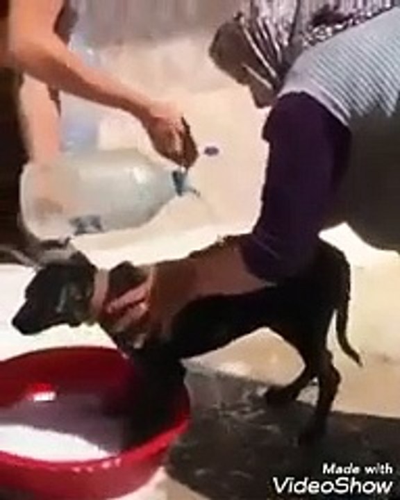 Tontish Aunt Washing the Dog in a Basin
