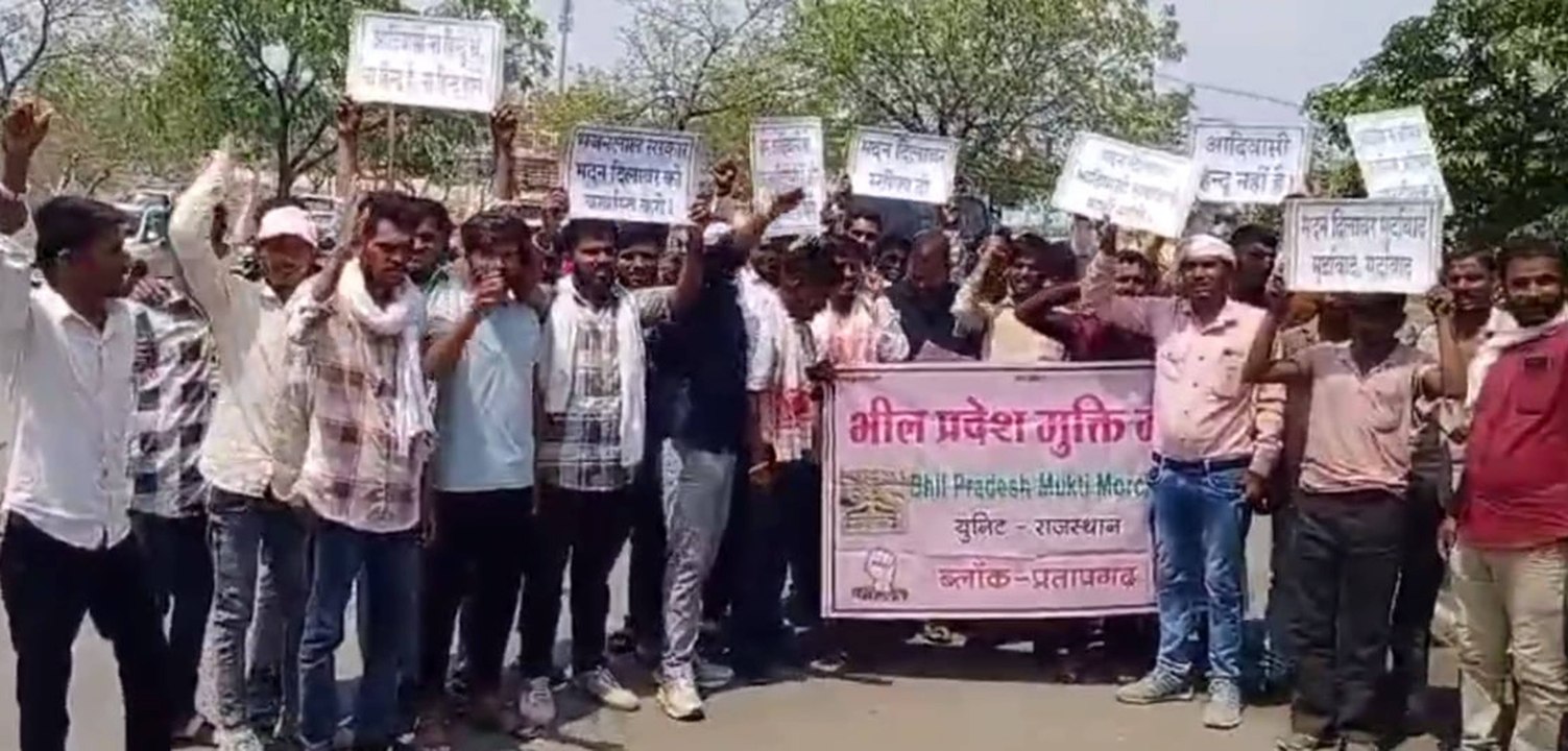 भील प्रदेश मुक्ति मोर्चा ने शिक्षा मंत्री के बयानबाजी का जताया विरोध, किए प्रदर्शन