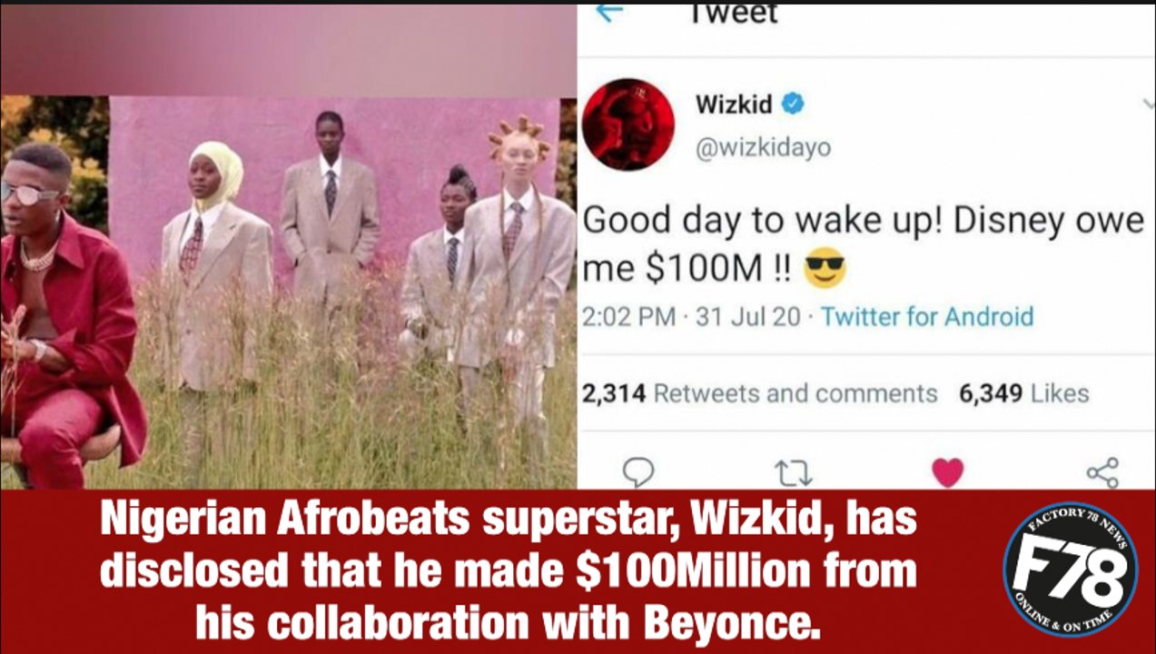 F78News: Wizkid claims Disney owes him $100M from his collaboration with Beyonce. #Beyonce #Disney #Wizkid