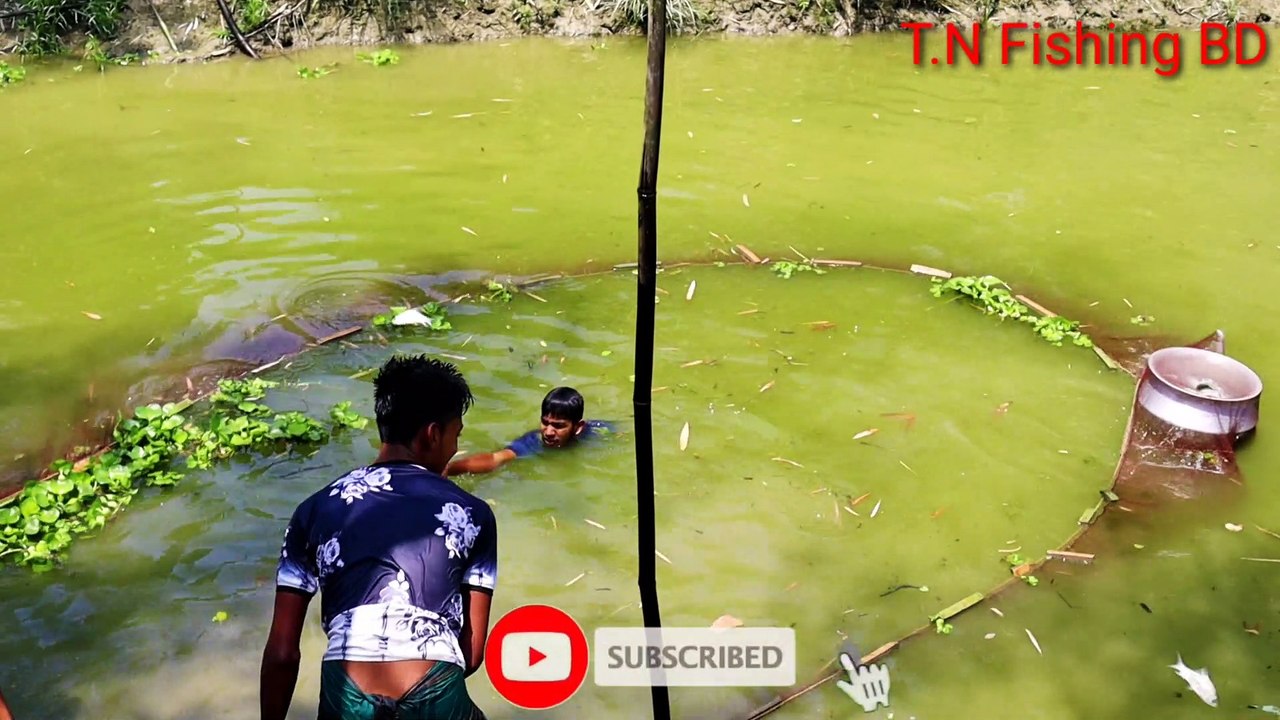 Net Fishing Fish Catching Using By Net in The Village Beautiful Water Pond T.N Fishing BD