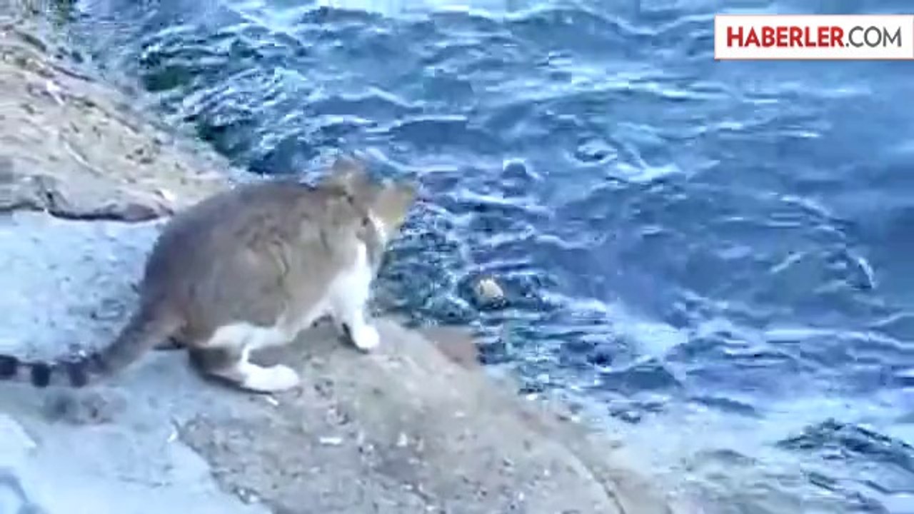 İstanbul Boğazı'nda Balık Avlayan Kedi