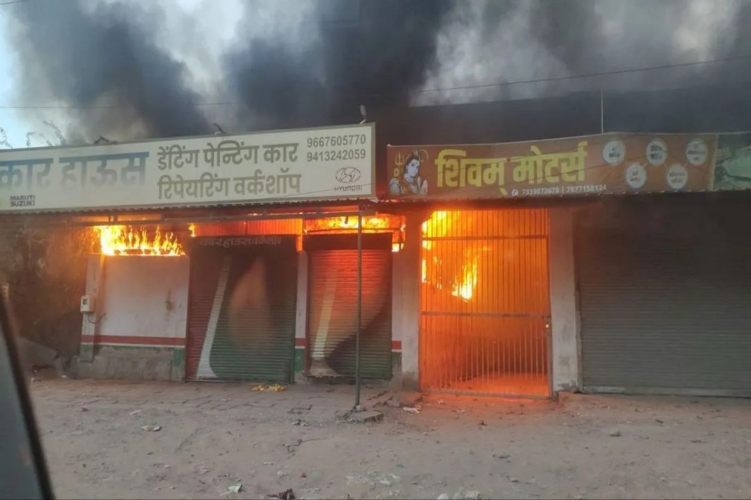 मूण्डवा तिराहे पर आग का तांडव: गैराज में खड़ी गाड़ियां जलकर खाक, पंप के पास टला बड़ा हादसा