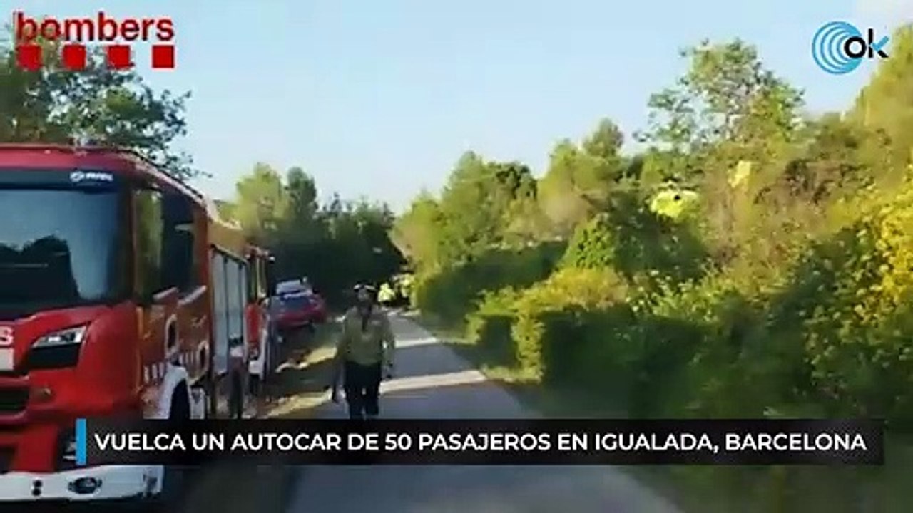 Vuelca un autocar de 50 pasajeros en Igualada, Barcelona
