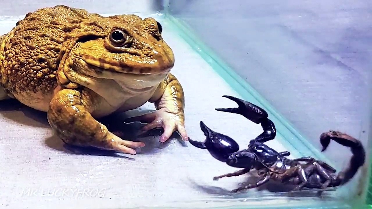 Amazing!! Asian Bullfrog With Big Black Scorpion! Warning Live Feeding