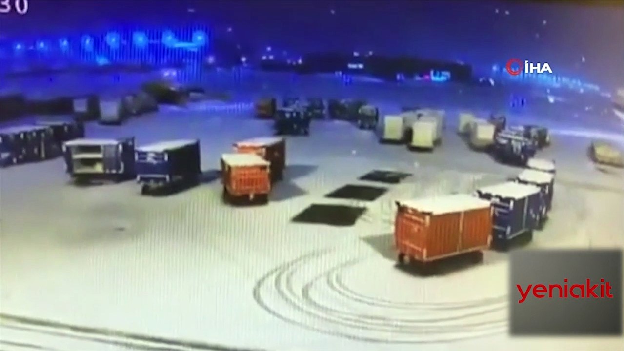 Pistte duramayan uçak, bagaj arabalarına çarptı! İşte o anlar...