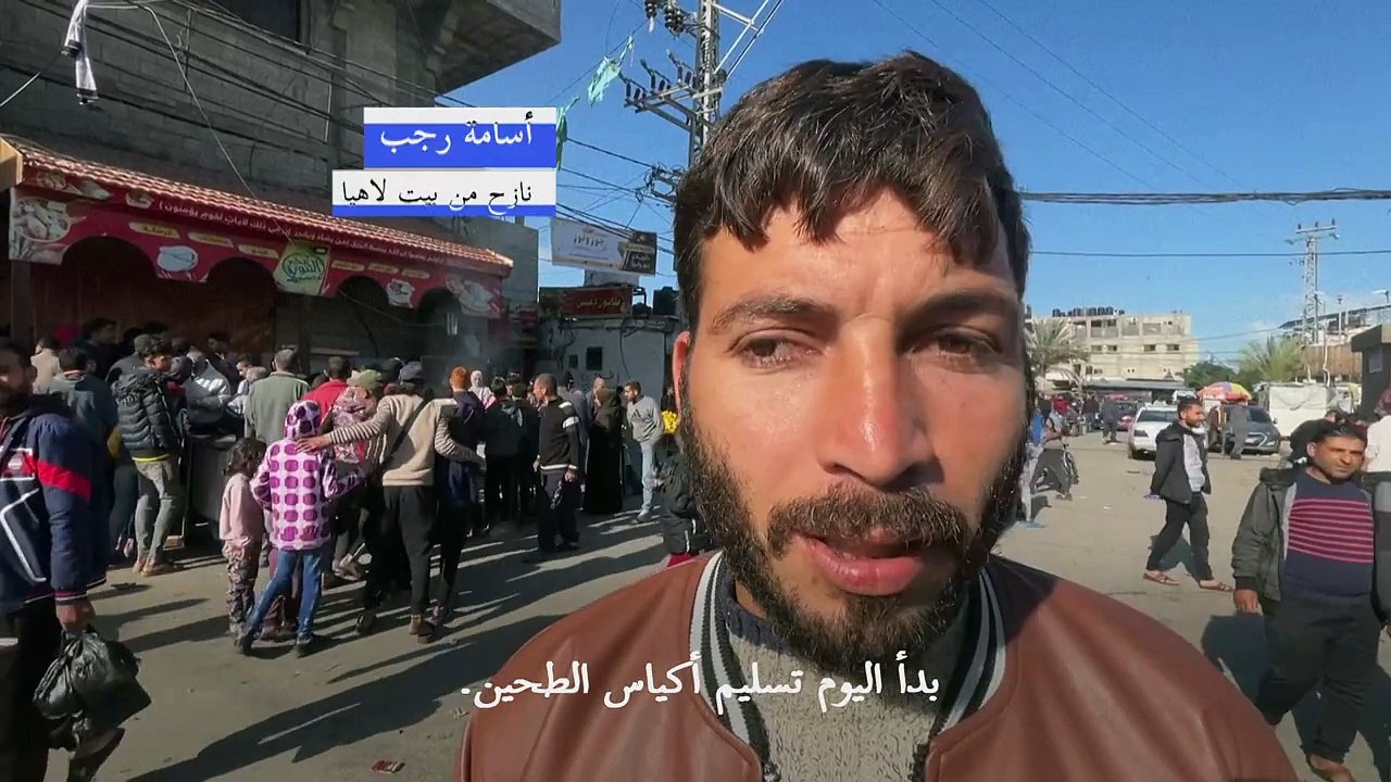 طوابير انتظار طويلة في رفح لتلقي أكياس الطجين من الأونروا