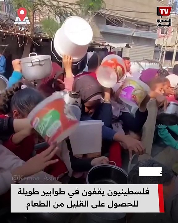 فلسطينيون يقفون في طوابير طويلة للحصول على القليل من الطعام