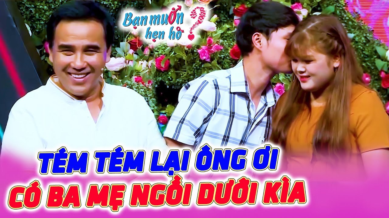 Giúp người chơi có bạn trai - Cát Tường cùng Quyền Linh dạy bạn nữ hôn môi trên Bạn Muốn Hẹn Hò.