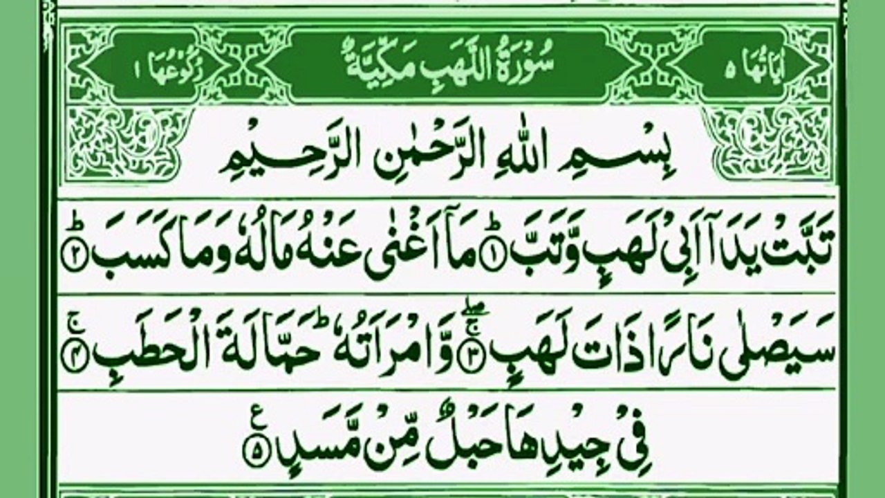 Surah Lhab ki Tilawat Quran Fatima Pani patti