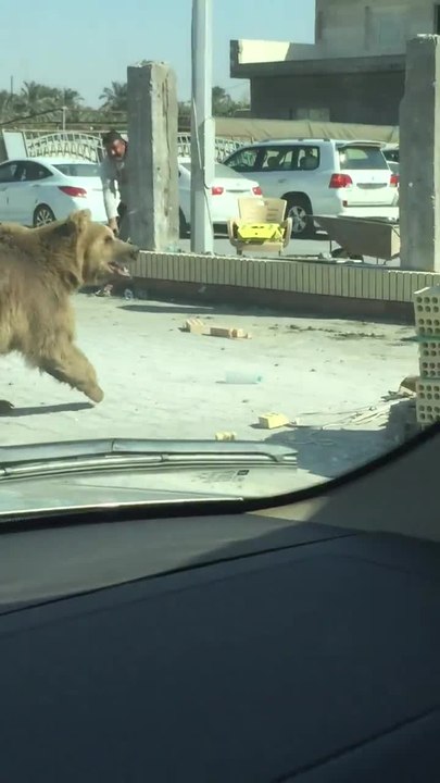 لحظة هروب الدب في شوارع البصرة الى ان تم امساكه .. دب يتجول ياسﻻم