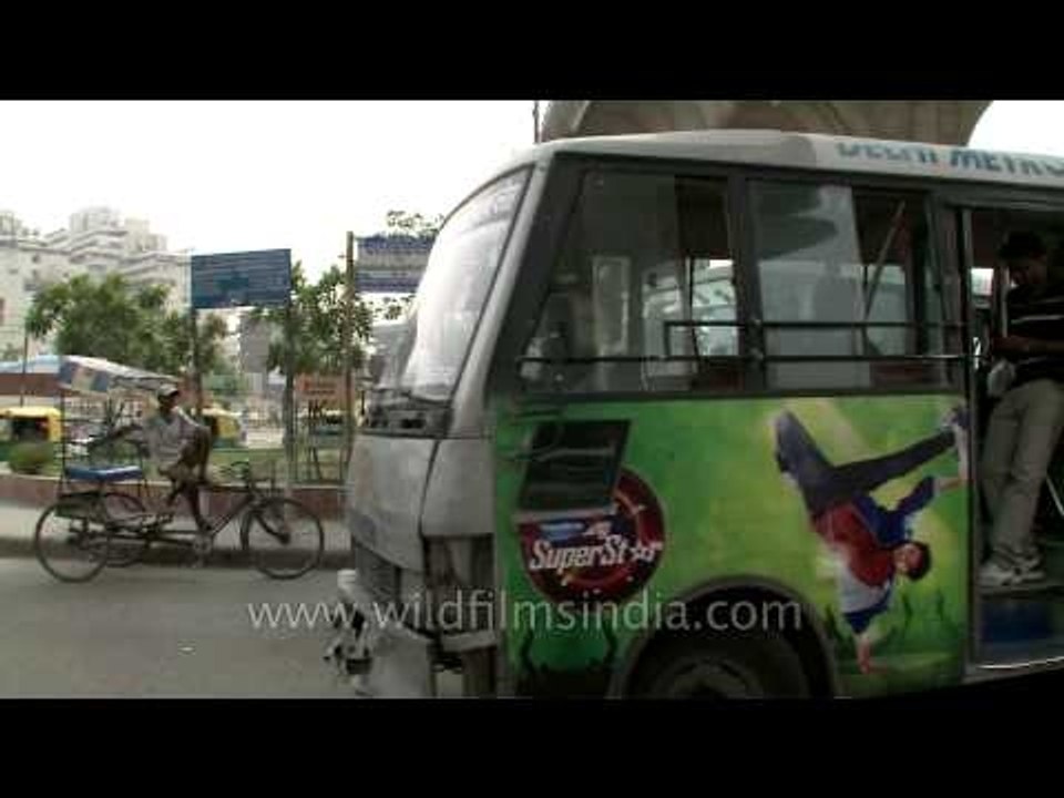 Delhi metro feeder Bus waiting for passengers at Netaji Subhash place metro station