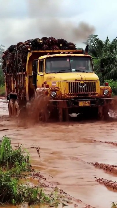 Truk Sawit Lawan Banjir! Jalan Berlumpur Jadi Arena Aksi!