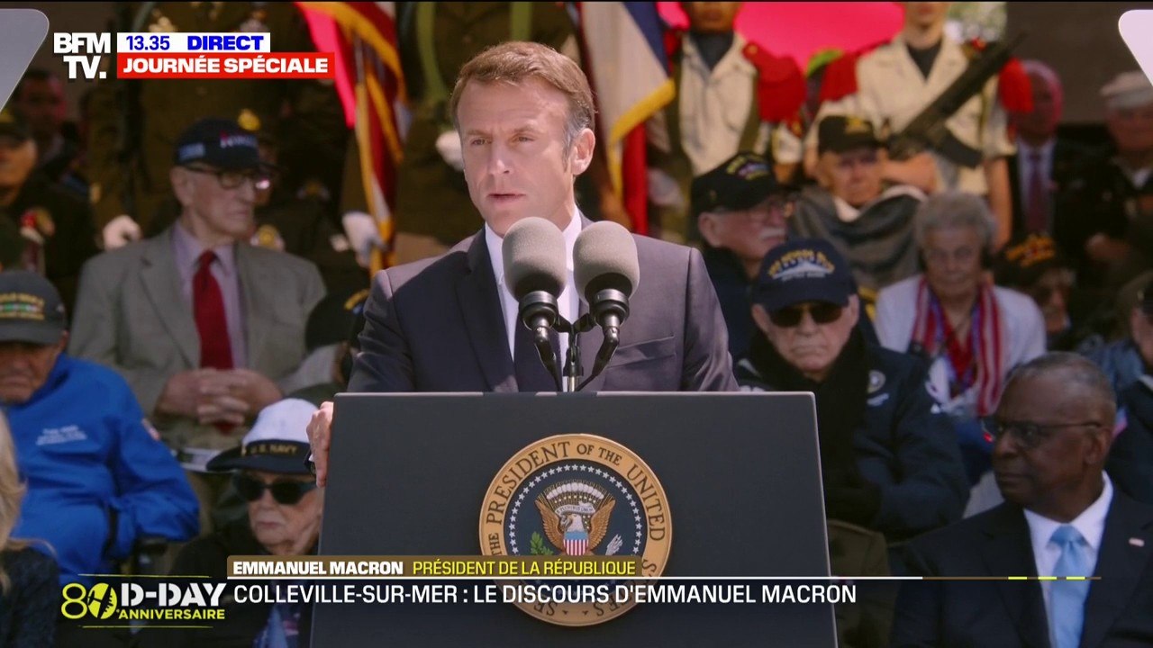 "Vous aviez des rêves, des projets, un avenir et vous avez tout quitté": Emmanuel Macron salue les vétérans lors de la cérémonie des 80 ans du Débarquement