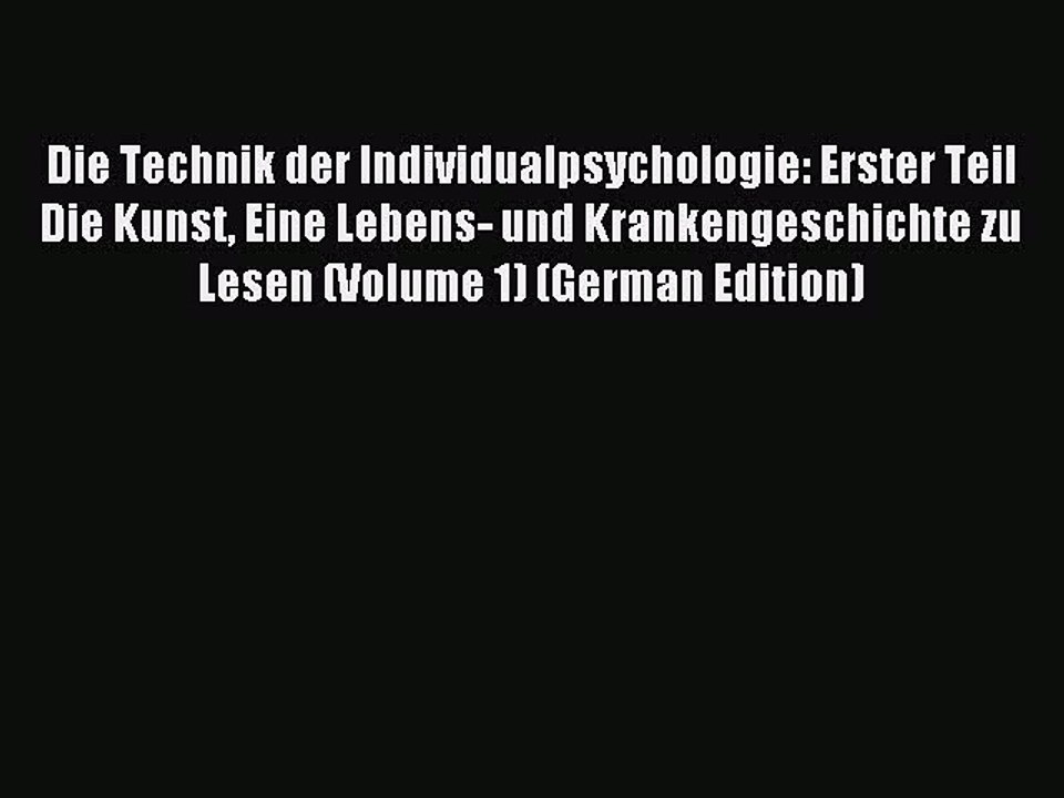 Read Die Technik der Individualpsychologie: Erster Teil Die Kunst Eine Lebens- und Krankengeschichte