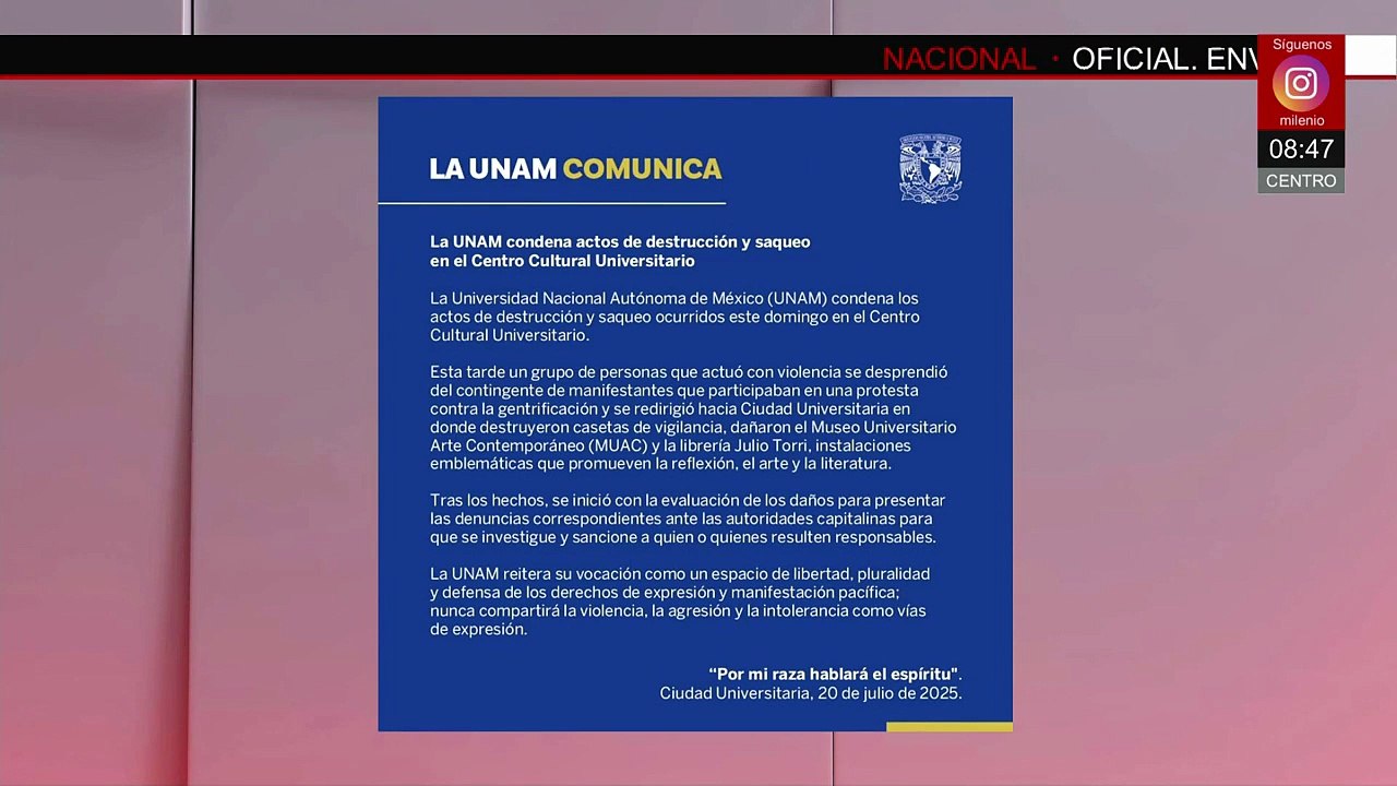 La UNAM condena hechos violentos en el Centro Cultural Universitario
