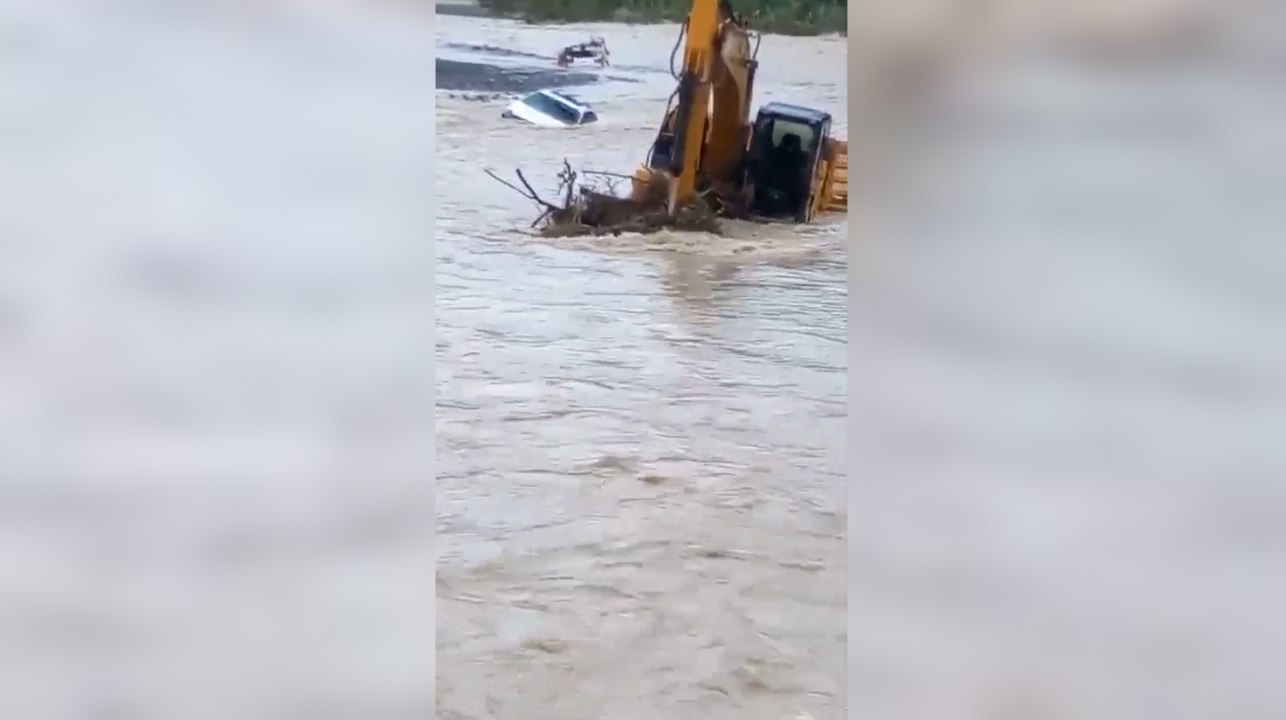 Vehículo atrapado por la crecida del río Nizao
