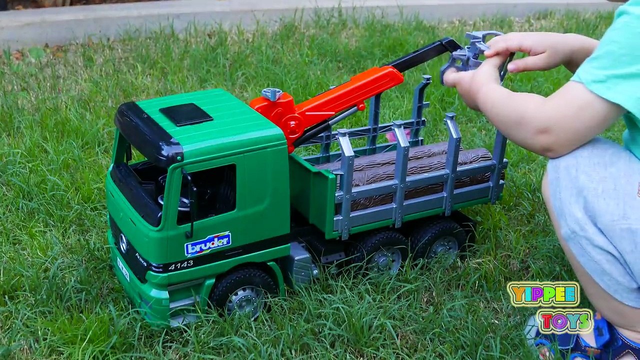 Truck with Crane to Load Logs - Kid Playing with the Truck-uHP9TjJX7Rw
