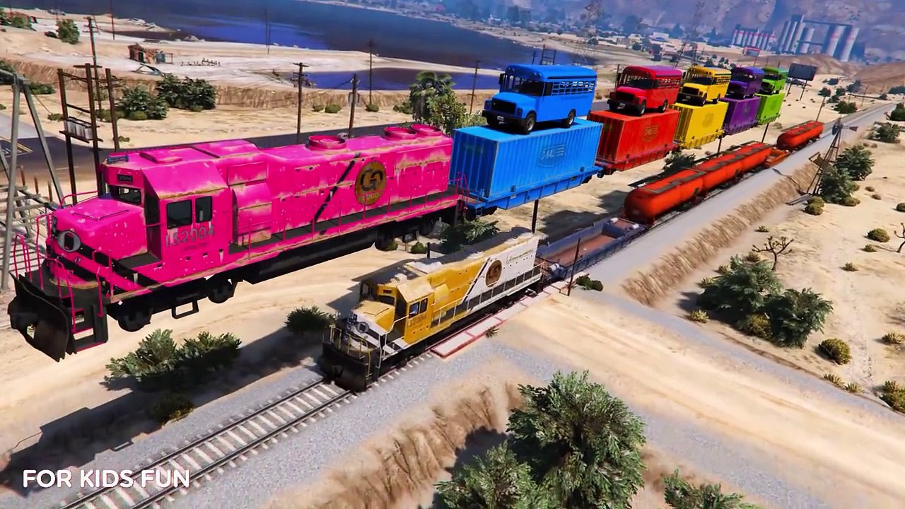 Spiderman and Train Fly Colors School Bus Transportation Cars Cartoon for Kids with Nursery Rhymes1