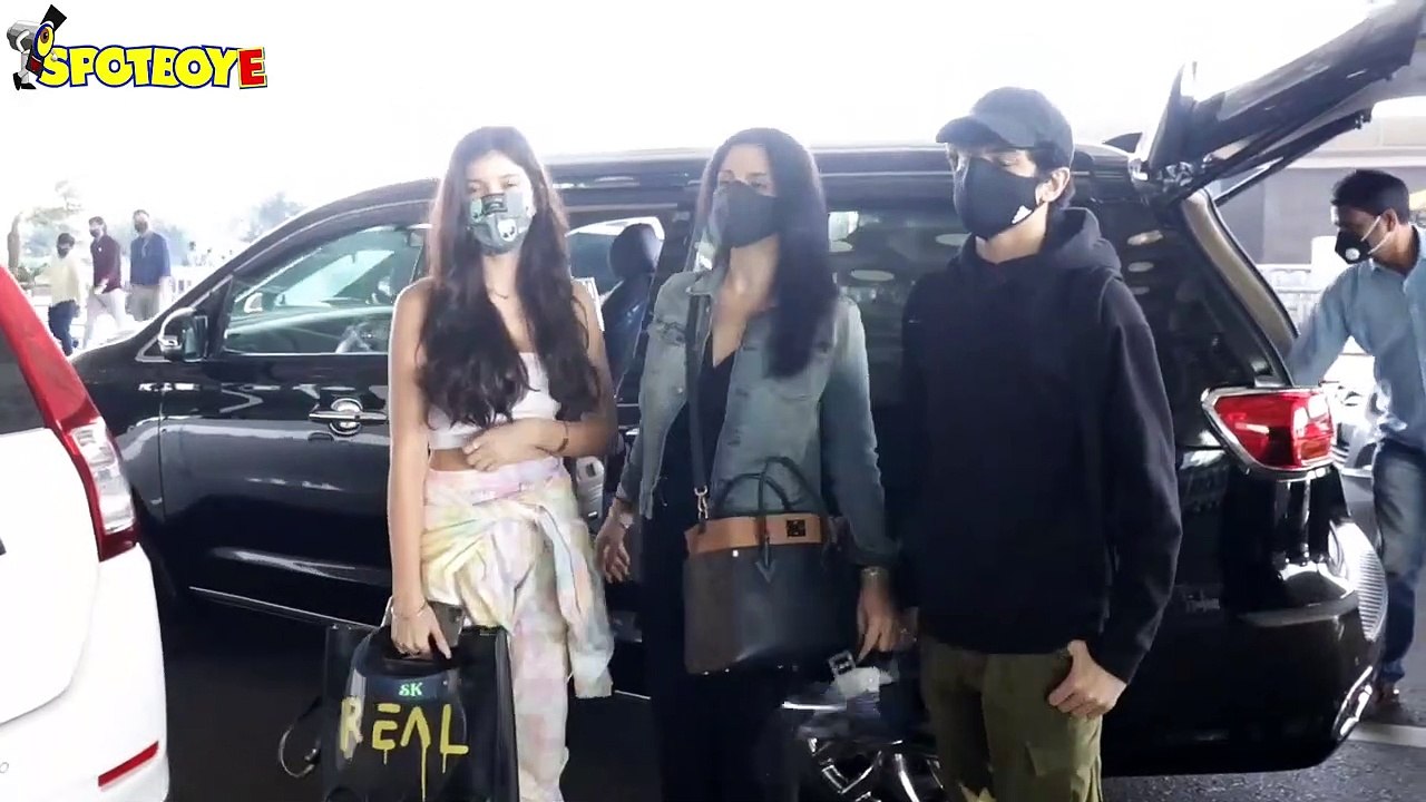 Shanaya Kapoor with Mom Maheep Kapoor & Brother Jahaan spotted at the Airport | SpotboyE