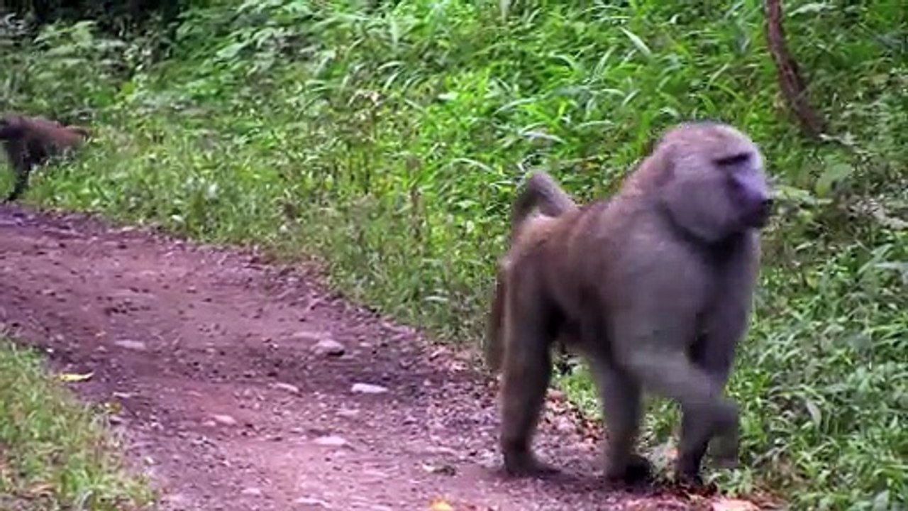#Animal baboon baby baboon walking on the road