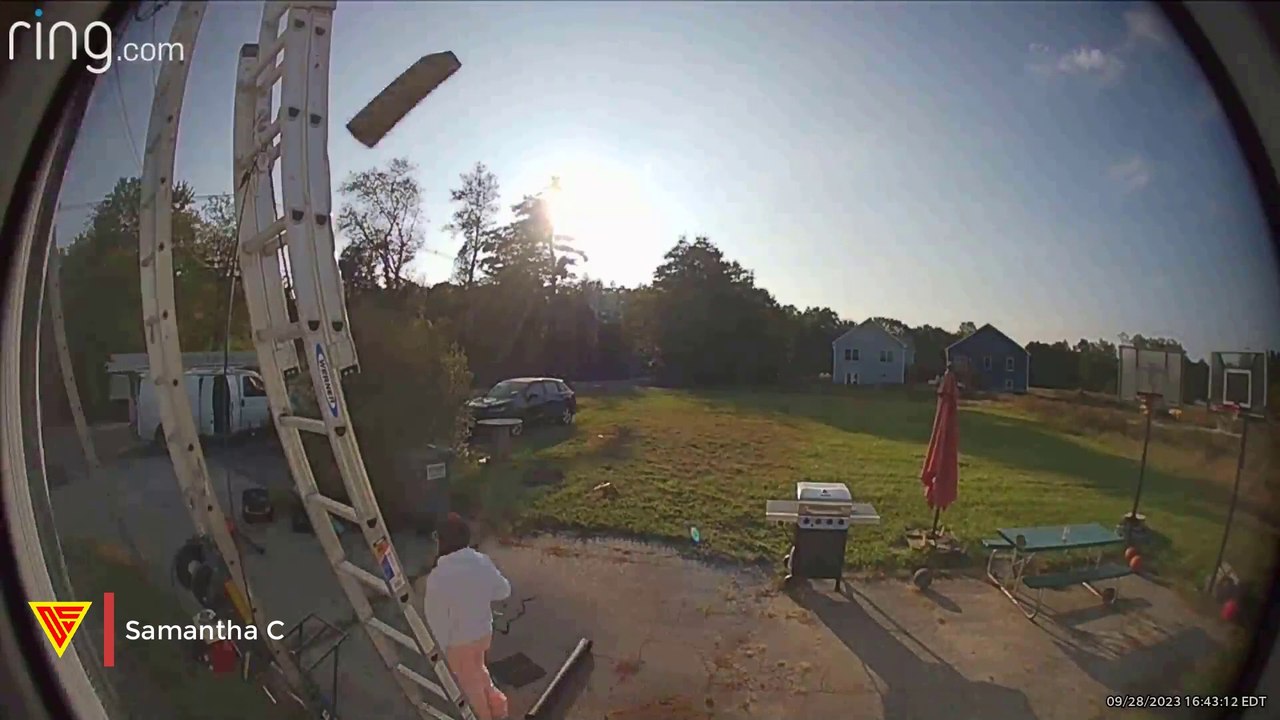 Object Falls onto Woman's Head Caught on Ring Camera | Doorbell Camera Video