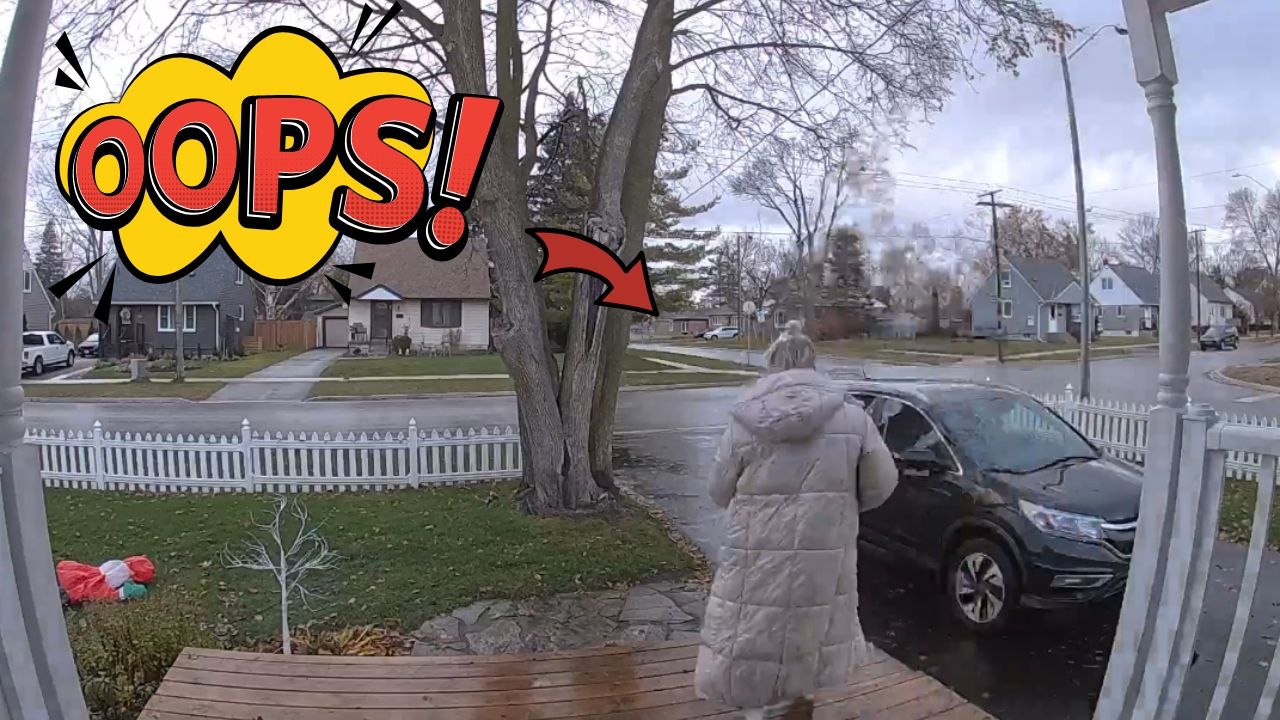 Doorbell Camera Captures Woman's Unexpected Fall While Bringing Dogs Inside