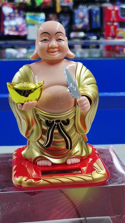 Solar Powered Laughing Buddha Showpiece Unboxing & Review | Moving Hand & Head