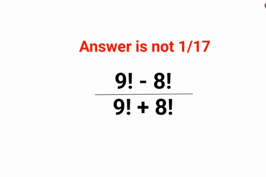 9!-8!/9!+8! The answer is not 1/17. Many got it wrong! Ukraine Math Test #math #percentages #ukraine