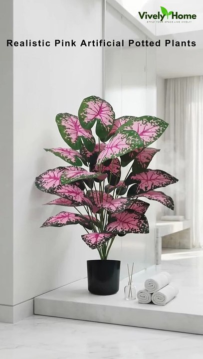 Beautiful Pink Artificial Potted Plants for Home and Desk Decoration