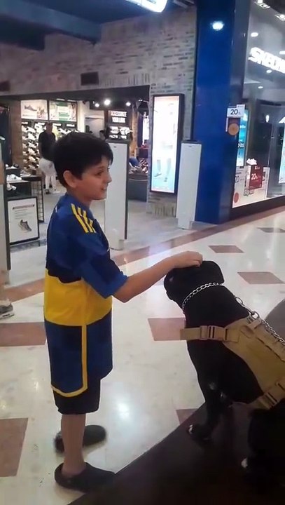 Adiestrador con su perro en el shopping