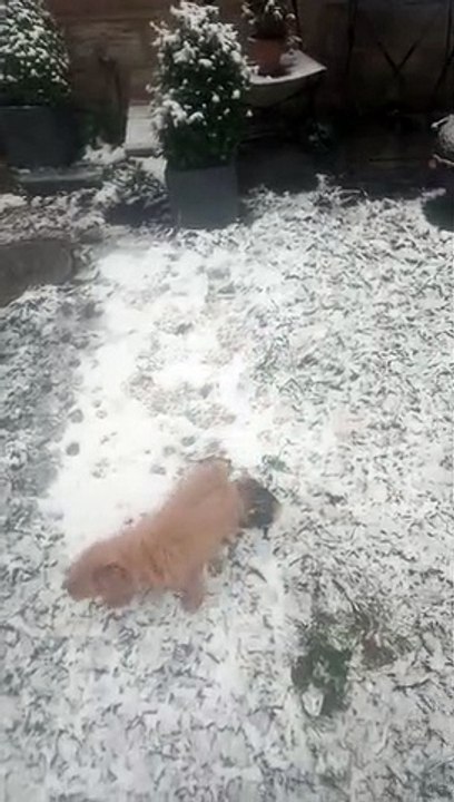 Puppy born without eyes plays in the snow after finding his 'forever home'