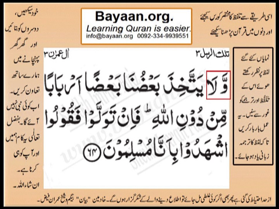 Quran in urdu Surah 003 Ayat 064B Learn Quran translation in Urdu Easy Quran Learning