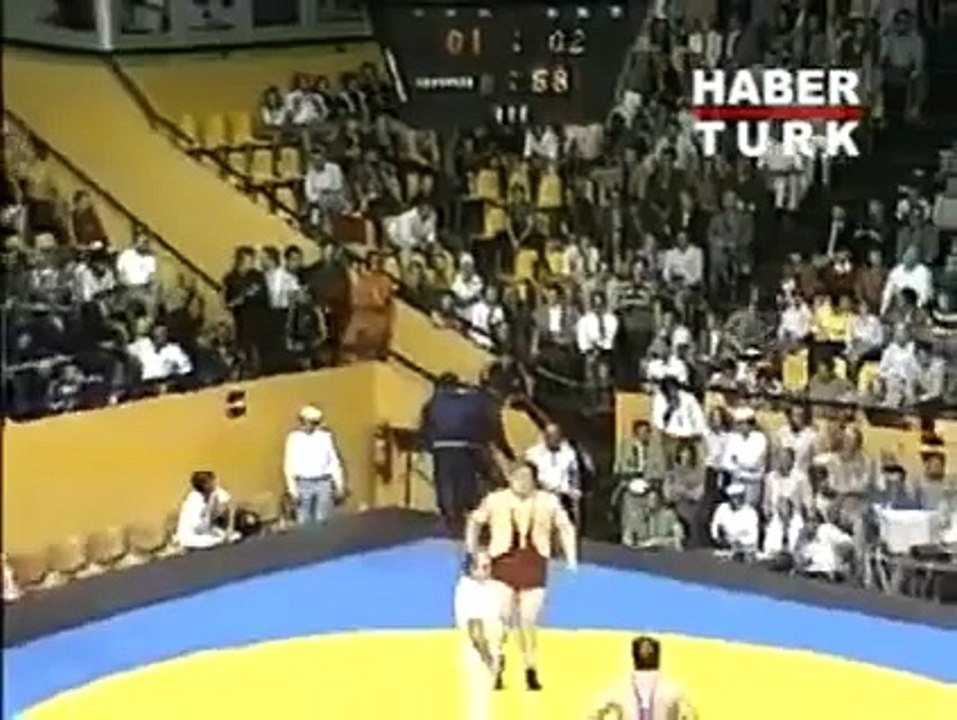 Rus güreşçi Islamgereev, maçın son anlarında 'uçan sincap' tekniğiyle rakibini tuş etti.