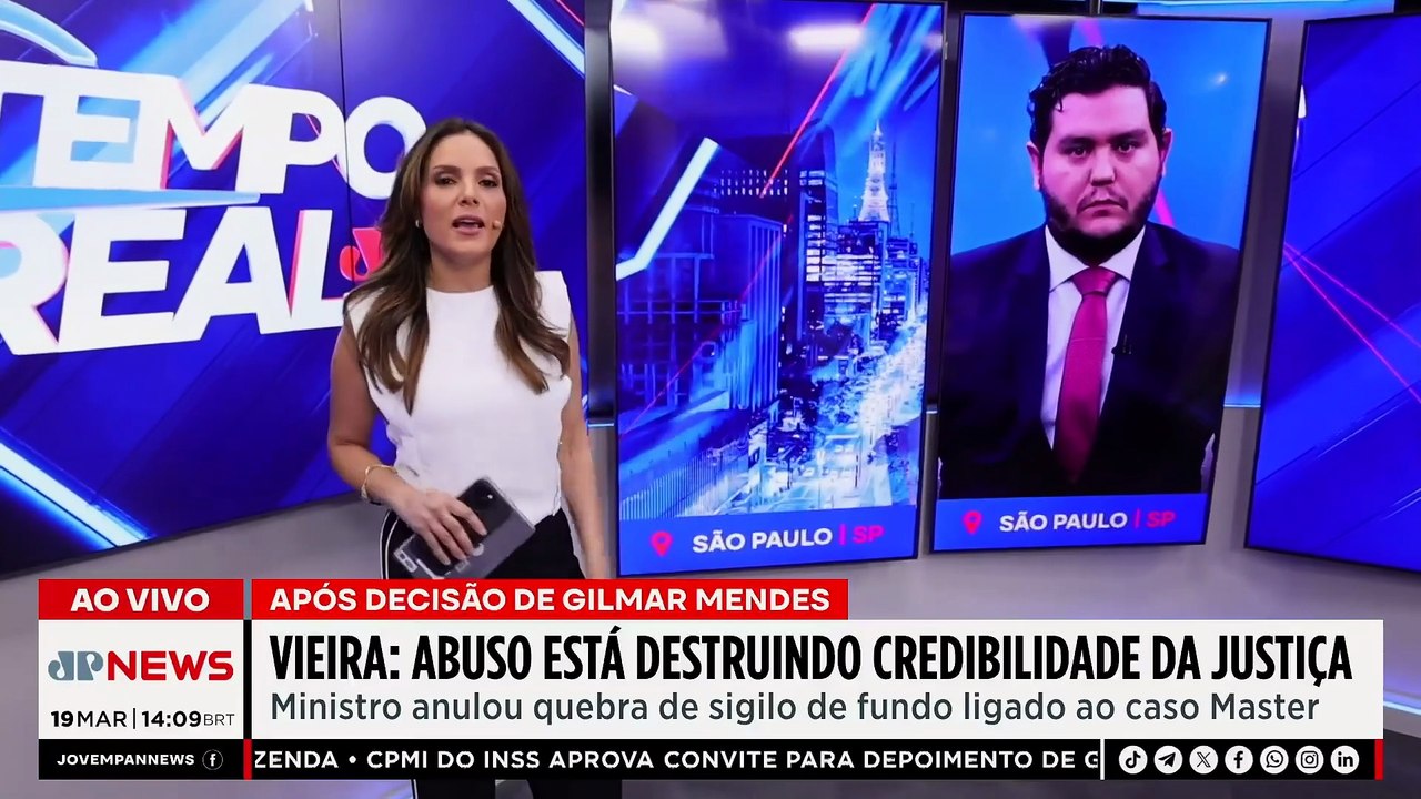 Caso Master: Gilmar Mendes anula quebra de sigilo de empresa de Dias Toffoli | TEMPO REAL
