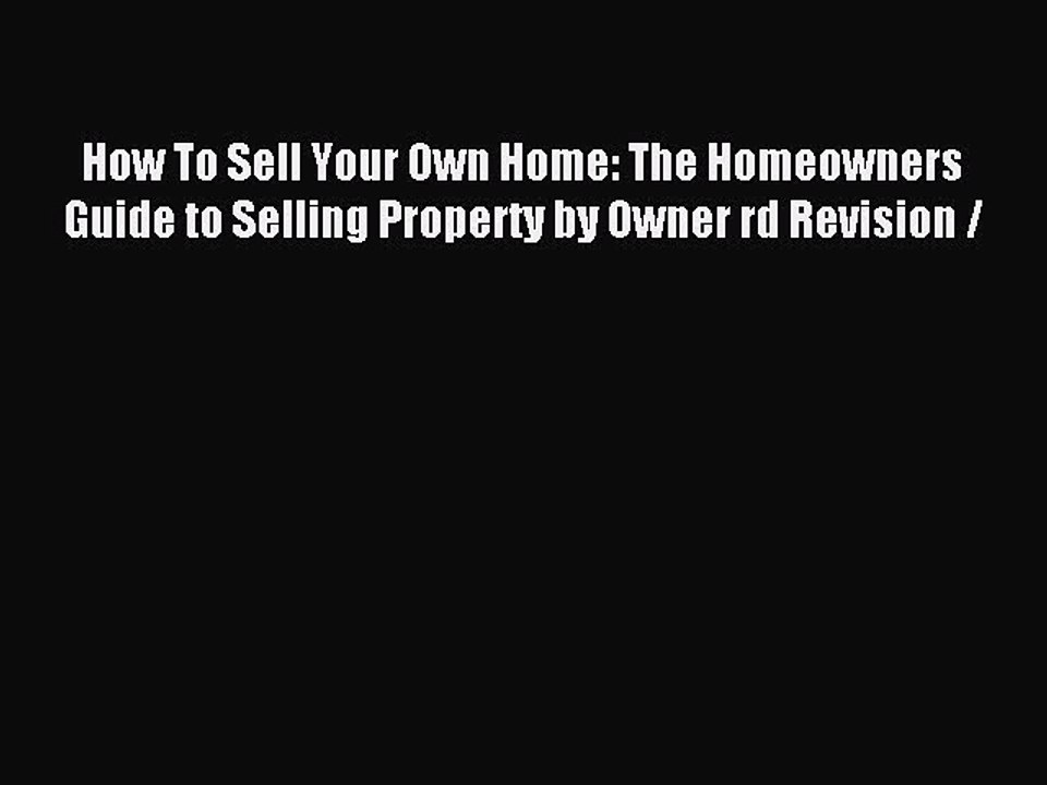 Read How To Sell Your Own Home: The Homeowners Guide to Selling Property by Owner rd Revision