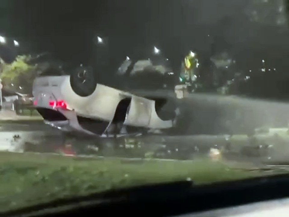 Carro capota próximo à shopping de Lauro de Freitas na RMS; veja