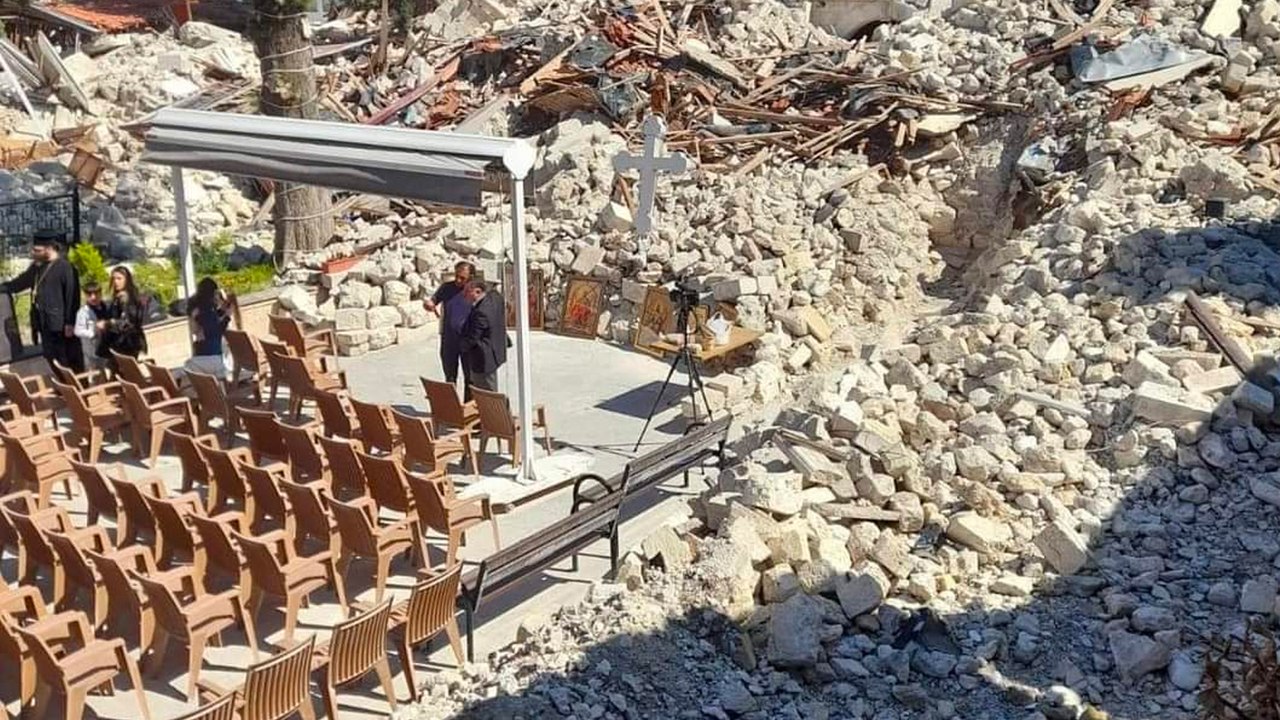 Hatay'da Paskalya ayini, depremde yıkılan Antakya Kilisesi’nin önünde yapıldı