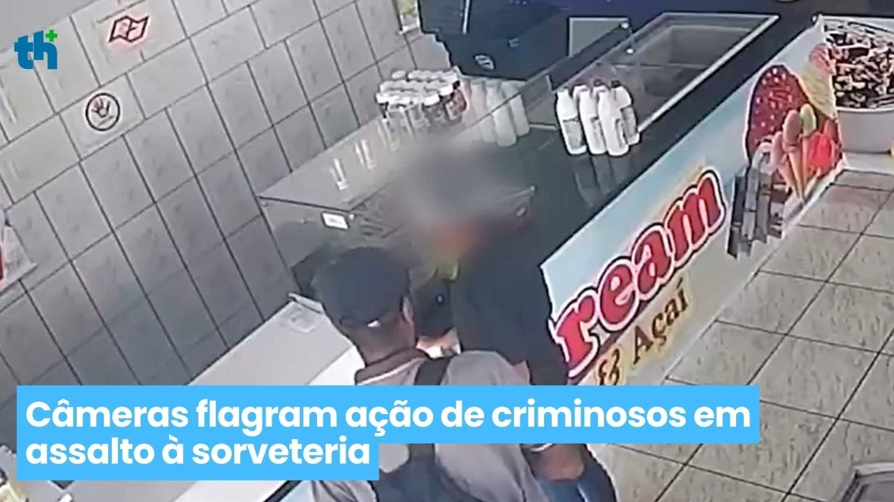 Câmeras flagram ação de criminosos em assalto à sorveteria