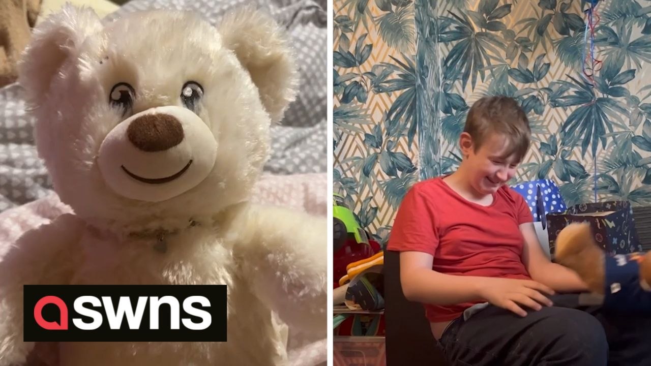Emotional moment teen receives teddy bear with voice recording of late mum