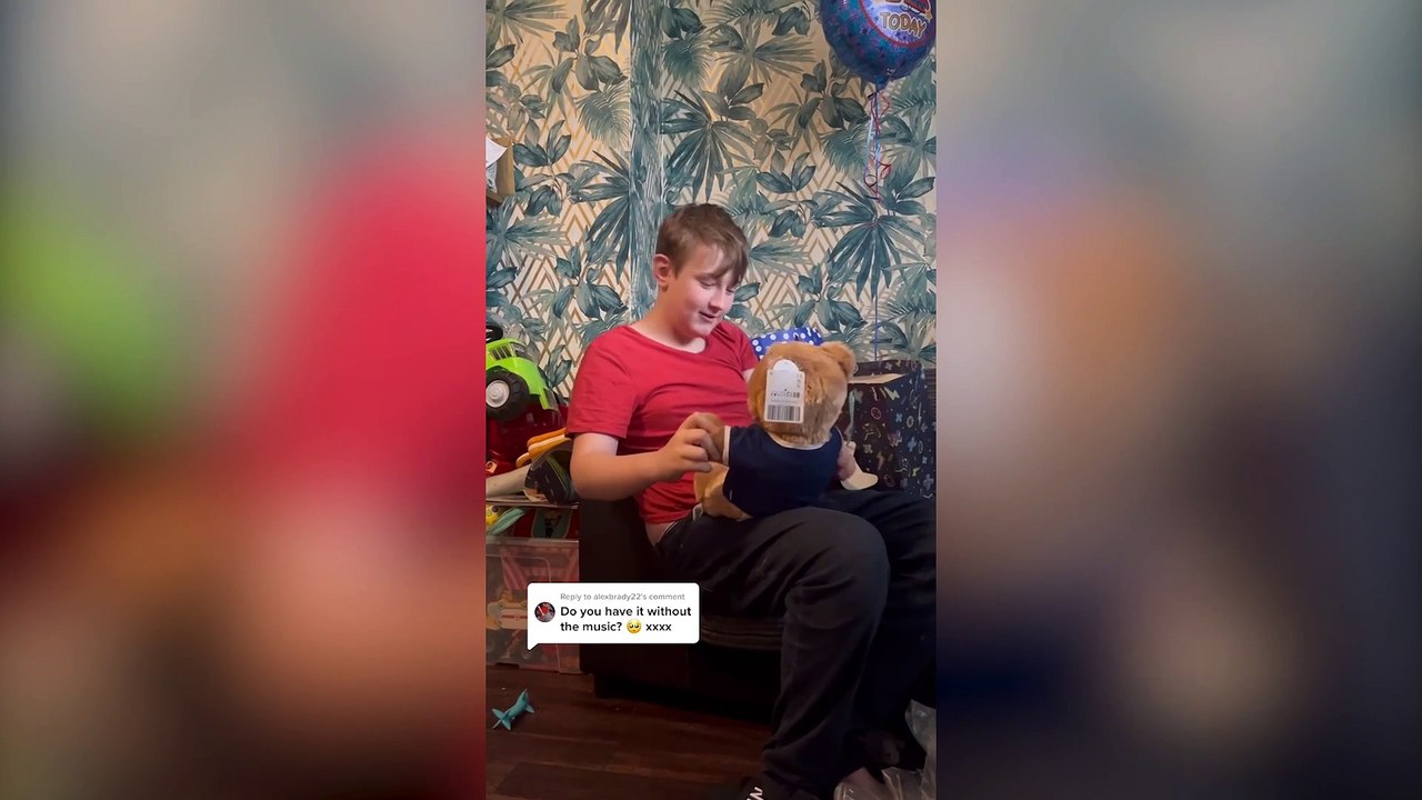 This is the emotional moment a young boy was reduced to tears after he received a teddy bear with a voice recording of his late mother.