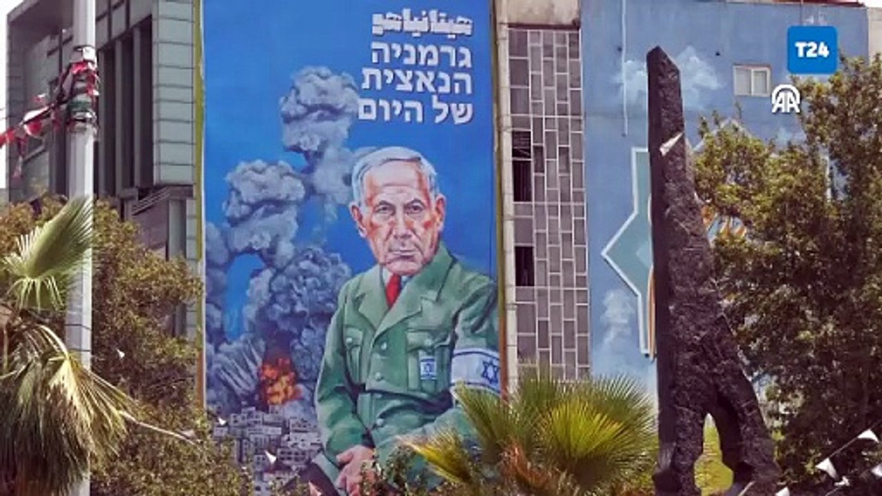 Tahran’da İsrail karşıtı dev afiş Filistin Meydanı’na asıldı