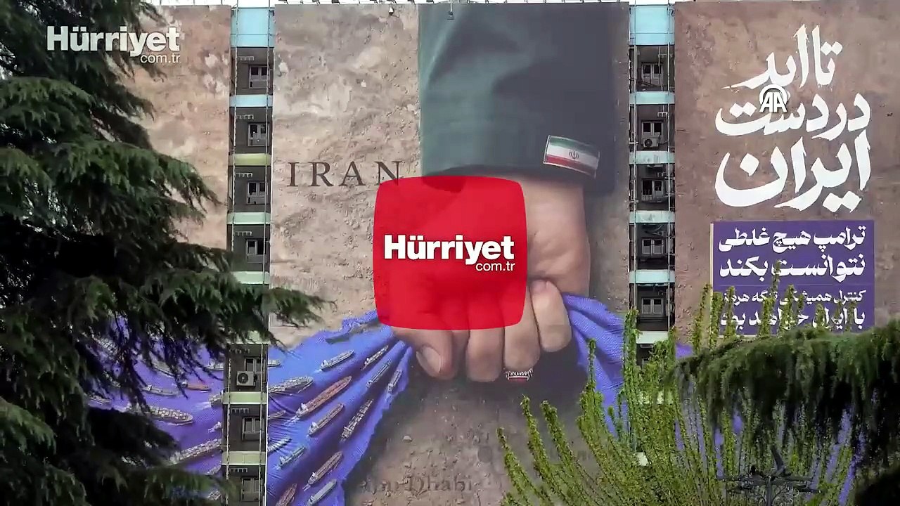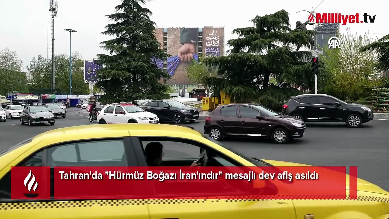 Tahran'da "Hürmüz Boğazı İran'ındır" mesajlı dev afiş asıldı